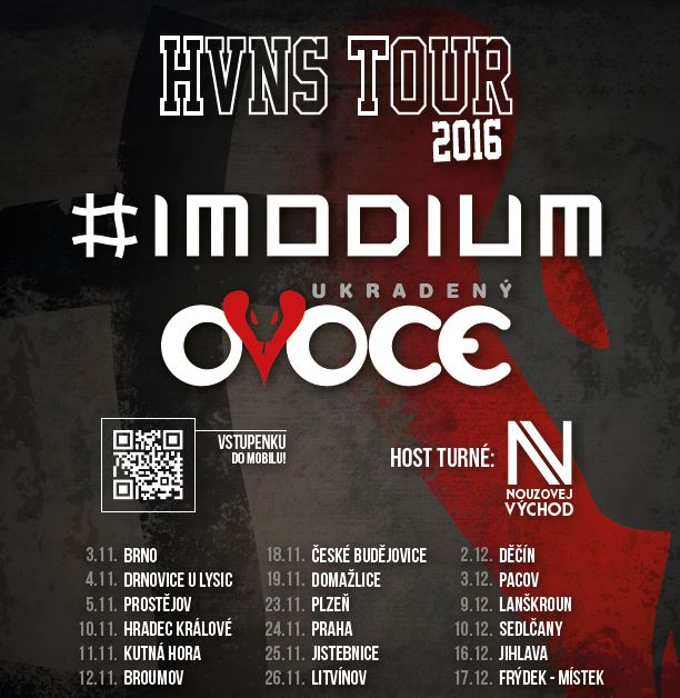 Skupiny Imodium a ukradenÝovoce jsou jedna velká parta a již potřetí vyjíždí na společné turné. HVNS tour obsáhne celkem 18 zastávek napříč republikou. Obě kapely se zároveň ohlašují svými novinkami. Jako support turné se představí skupina Nouzovej východ, která s sebou přiveze svou novou desku.