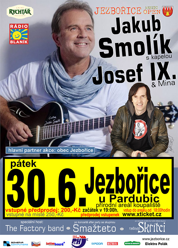 Jakub Smolík s kapelou a Josef IX. a Mina vystoupí v Jezbořice u Pardubic v přírodním koupališti.