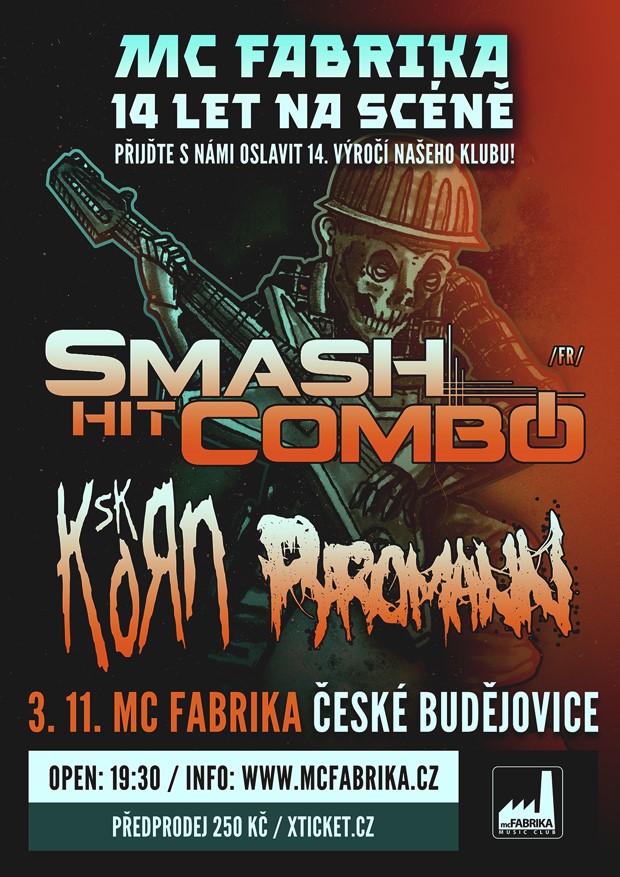 SMASH HIT COMBO + KORN SK REVIVAL + PYROMANN / MC FABRIKA 14TH ANNIVERSARY Není v prodeji