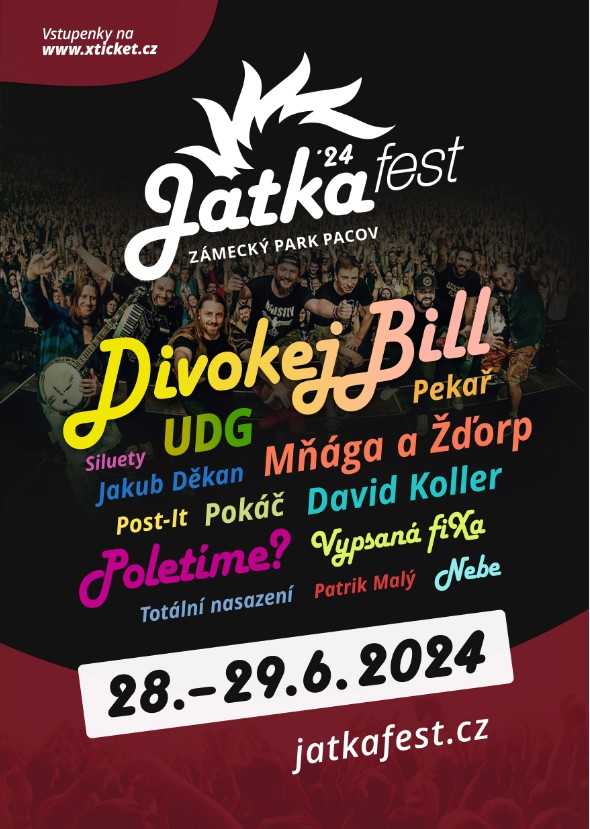 Festival se každý rok překonává a letos sází jednu hvězdu za druhou. Do krásného prostředí zámeckého areálu totiž přiveze své největší hity DIVOKEJ BILL, POLETÍME? král českého rocku DAVID KOLLER. Pódium ovládne legendární MŇÁGA A ŽĎORP a pod kůži se vryje VYPSANÁ FIXA. Bez stálic festivalu POKÁČE a UDG by se JATKA FEST rozhodně neobešel. Na festival se vrátí i PEKAŘ, JAKUB DĚKAN, NEBE, SILUETY, POST - IT, PATRIK MALÝ A celou sestavu uzavře TOTÁLNÍ NASAZENÍ.