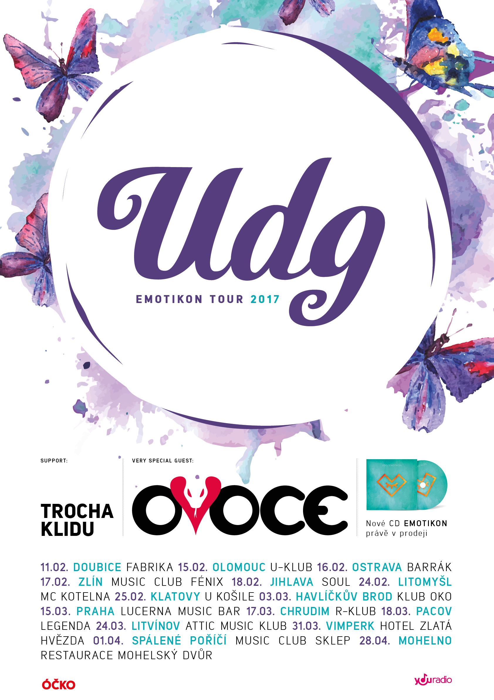 Jarní část tour UDG k desce Emotikon. Jako host se představí mladá šumperská kapela Trocha Klidu. Roli afterkapely na tomto nekončícím večírku přijala pražská kapela OVOCE / ex-zakázanÝ.