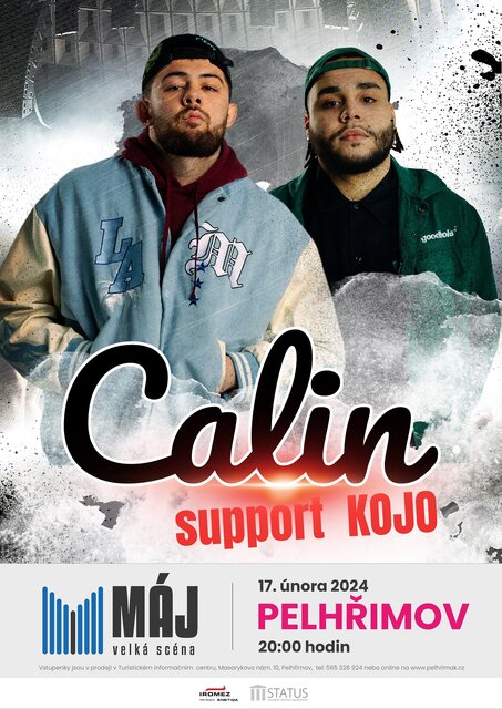 Calin se vrací do Pelhřimova! V tomto roce vydal společné album s Viktorem Sheenem ROADTRIP se kterým vyprodali O2 arenu. Jako hosta přiveze Koja, který před měsícem vydal své druhé album Late Checkout.