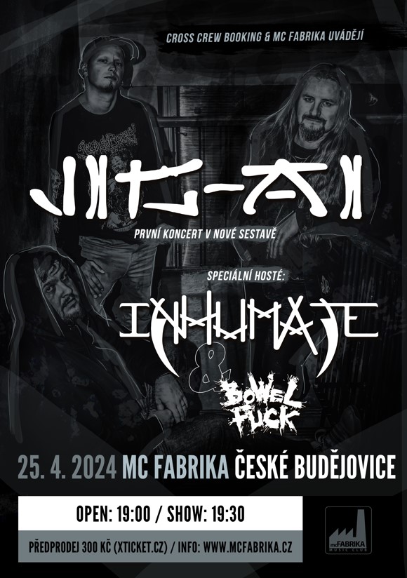Jig-Ai + Inhumate (FR) a Bowelfuck v Mc Fabrika v Českých Budějovicích