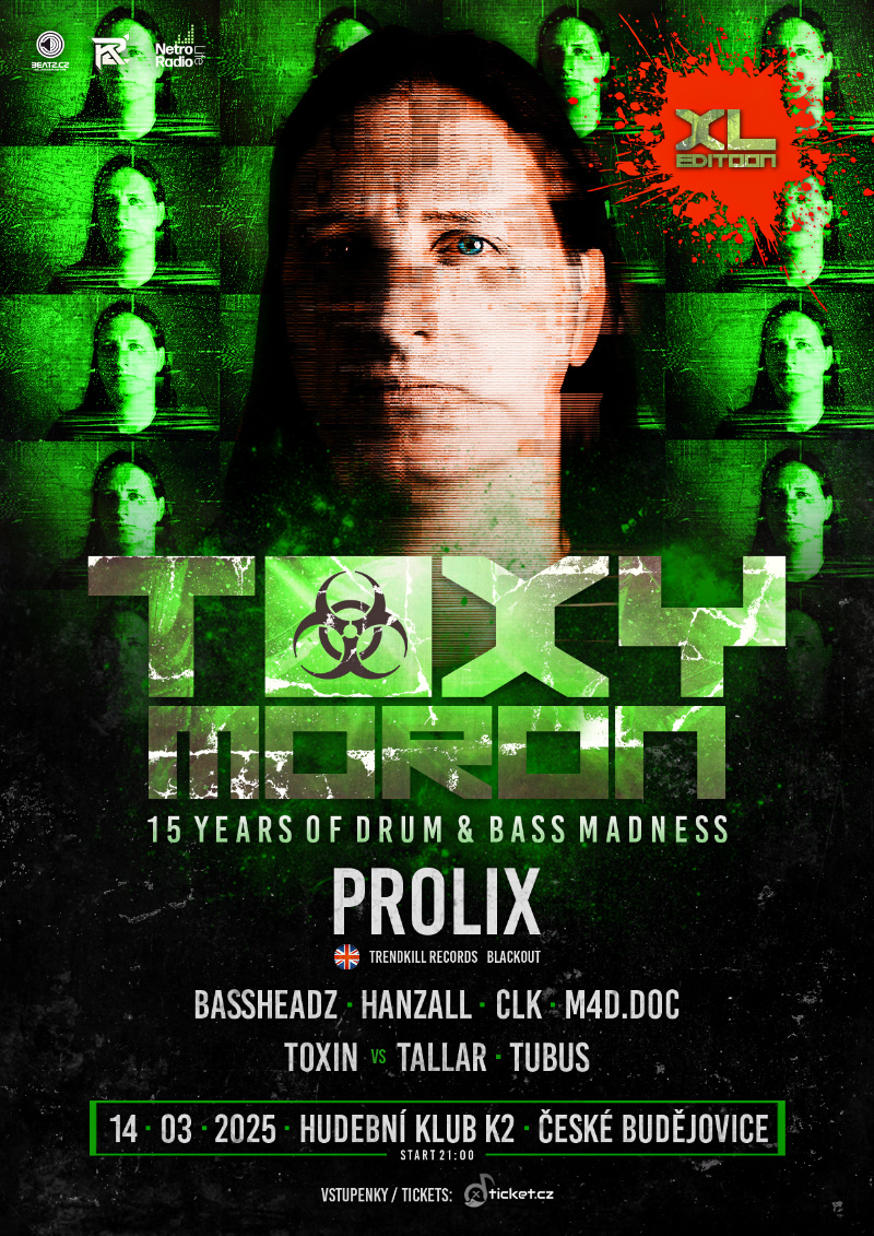 TOXYMORON - 15 Years of D&B Madness w. PROLIX (Trendkill Records, Blackout / UK) - K2 České BudějoviceNení v prodeji
