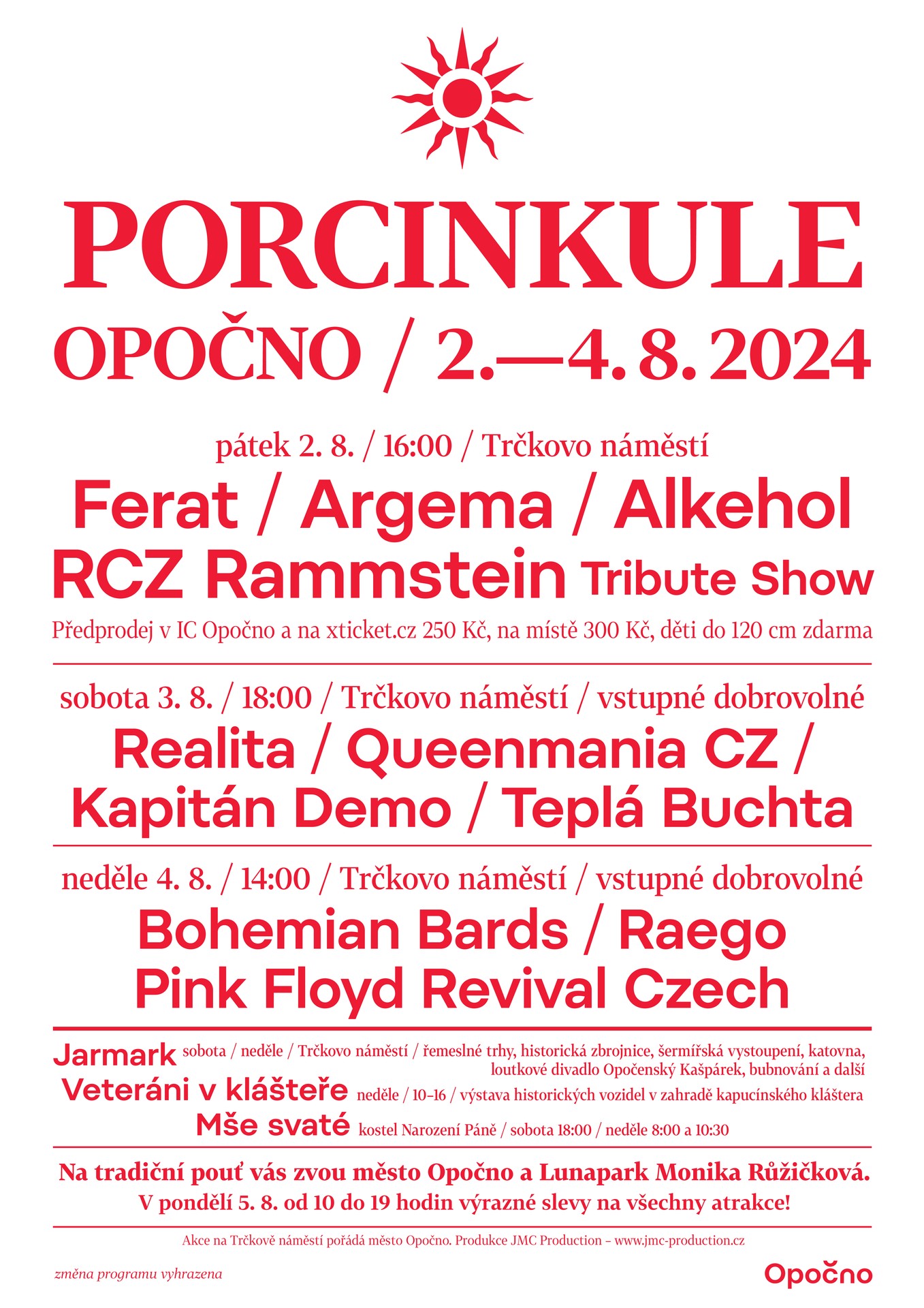 Předprodej vstupenek na páteční koncerty probíhá zároveň i v Informačním centru Opočno.