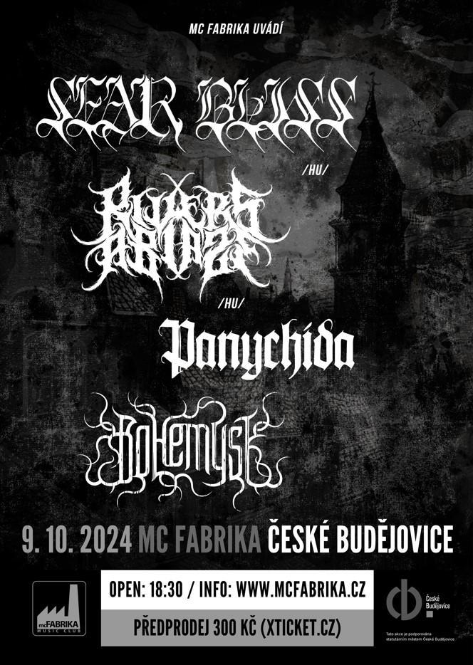 Sear Bliss + Rives Ablaze + Panychida + Bohemyst v Mc Fabrika v Českých Budějovicích