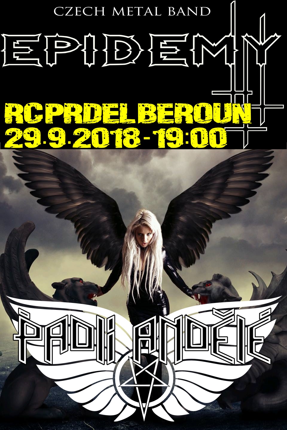První koncert nové metalové kapely z Berouna - PADLÍ ANDĚLÉ doprovodí zkušená metalová banda EPIDEMY