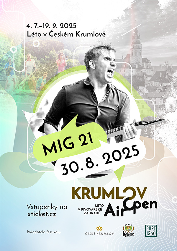 Skupina Mig 21, známá svým originálním spojením popové hudby s tanečními a vizuálními prvky, vystoupí 30. srpna 2025 ve 20:00 v Pivovarské zahradě v Českém Krumlově v rámci série koncertů Krumlov Open Air 2025. Kapela, kterou tvoří Jiří Macháček (zpěv), Pavel Hrdlička (trubka, klávesy), Jan Hladík (bicí), Tomáš Polák (kytara), Matej Benko (klávesy) a Rastislav Uhrík (baskytara), je na české hudební scéně aktivní od roku 1998 a proslavila se hity jako "Snadné je žít" a "Malotraktorem". Vstupenky na koncert jsou k dispozici v několika cenových vlnách, přičemž první vlna je za 590 Kč.