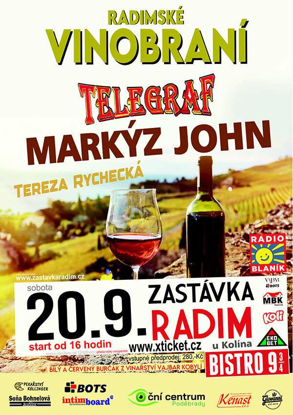 Radimské Vinobraní - Markýz John / Telegraf/ Tereza Rychetská - Zastávka Radim u Kolína Není v prodeji