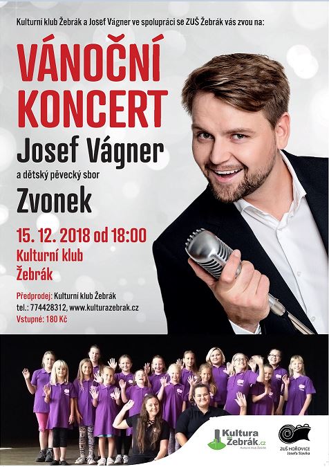 Vánoční koncert Josef Vágner a dětský pěvecký sbor Zvonek v KK Žebrák. Vstupné 180 Kč na místě, 150 Kč v předprodeji.