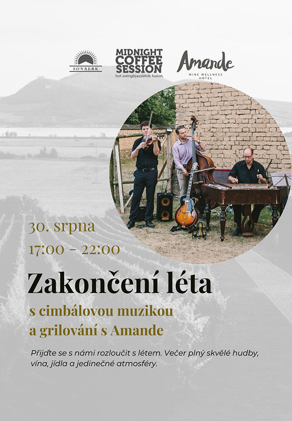 Zveme vás 30. 8. na poslední letní akci na Sonberku – Zakončení léta s cimbálovou muzikou a grilováním s Amande! Přijďte si vychutnat večer plný skvělé hudby, vína, jídla a jedinečné atmosféry. Lepší kombinace totiž neexistuje!
