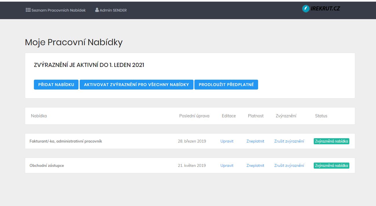 Neomezený přístup k zvýrazňování a topování nabídek na irekrut.cz. AKČNÍ NABÍDKA!