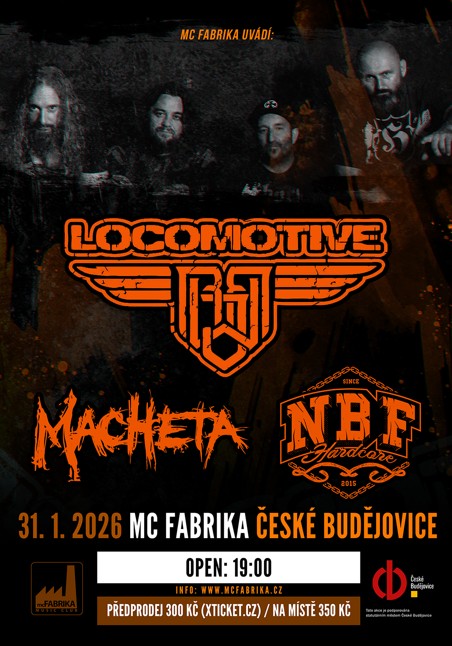 LOCOMOTIVE + NBF + MACHETA v Českých Budějovicích - Mc FabrikaNení v prodeji