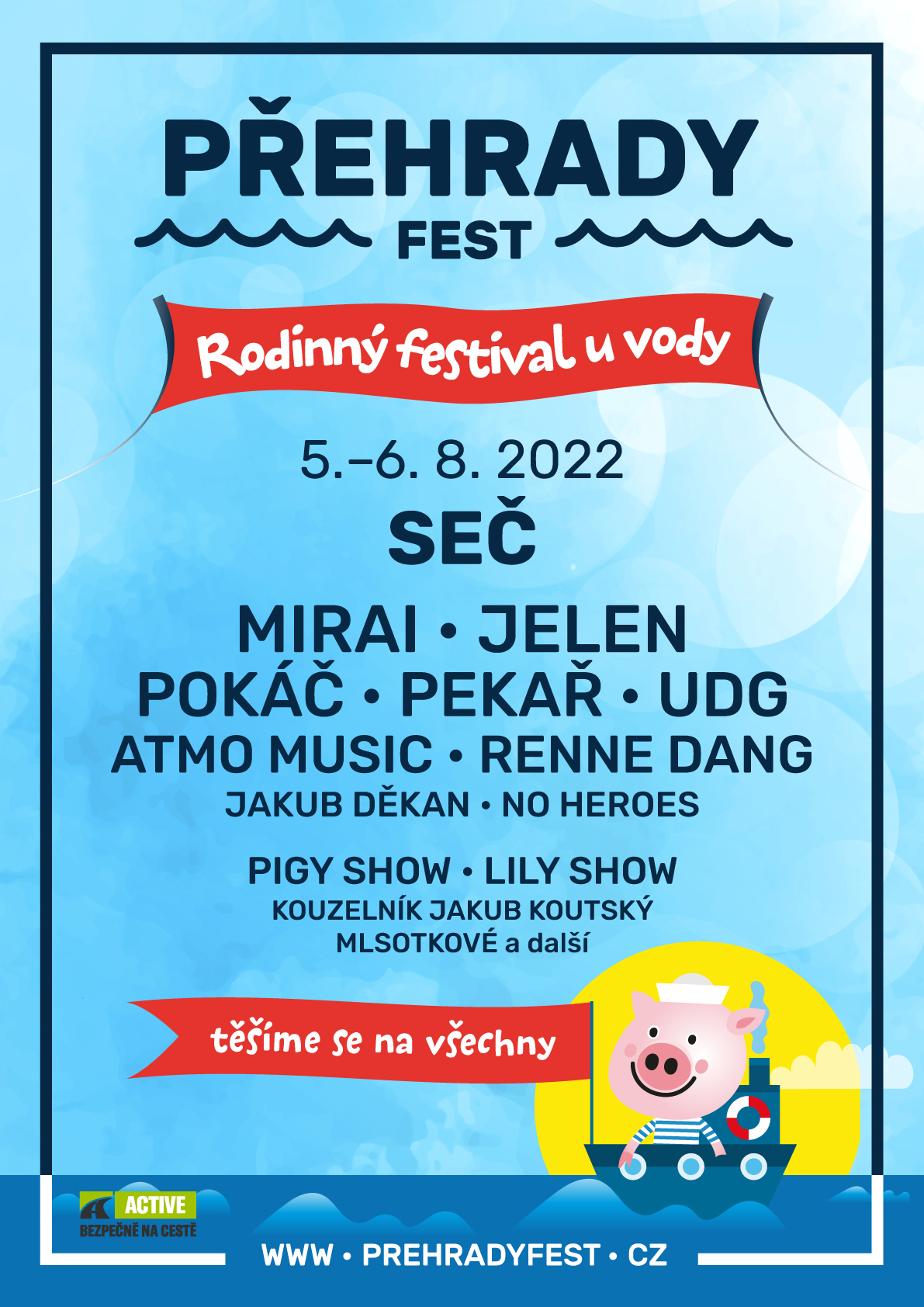 Potvrzené kapely na Přehrady FEST 2022: MIRAI, JELEN, POKÁČ, ATMO MUSIC, PEKAŘ, UDG, RENNE DANG, NO HEROES A JAKUB DĚKAN