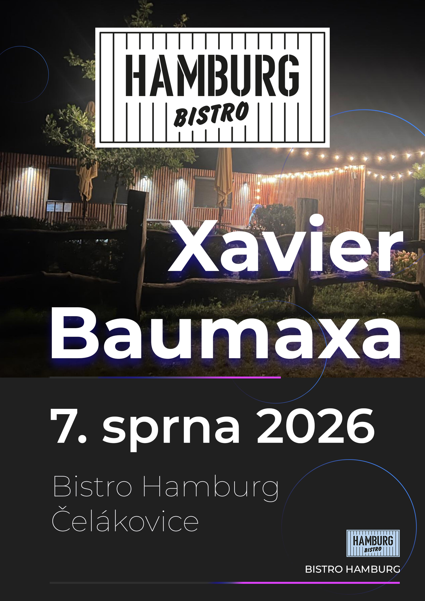 Xavier Baumaxa vystoupí 15. srpna 2026 v nové koncertní lokalitě u Bistro Hamburg v Čelákovicích, v nádherném přírodním prostředí přímo u řeky Labe. Scéna umístěná u lávky přes Labe dodává místu osobité kouzlo, které jeho originální tvorbě a osobitému humoru dokonale sedí. Nové místo tak nabízí jedinečný prostor pro letní kulturní zážitky v harmonii s přírodou.