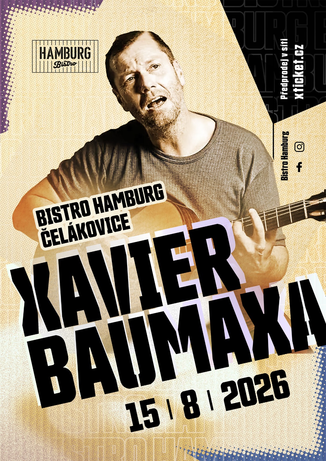 Xavier Baumaxa vystoupí 14. srpna 2026 v nové koncertní lokalitě u Bistro Hamburg v Čelákovicích, v nádherném přírodním prostředí přímo u řeky Labe.
