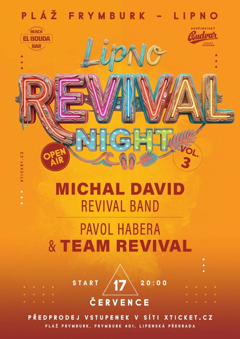Připravte se na nezapomenutelnou Revival Night, kde ožijí ty největší hity české a slovenské pop-rockové scény. Pod širým nebem, přímo u břehu Lipna, to rozbalíme ve velkém stylu!