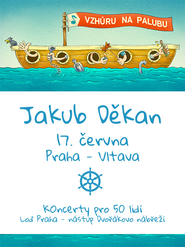 Vzhůru na palubu přináší live koncerty na palubě parníku Praha, kde si v malém počtu lidí bezpečně užijete nejen svého oblíbeného umělce, ale i dvouhodinovou vyhlídkovou plavbu Prahou. Mimo to svojí účastí umělce podpoříte. Interpreti i kapely a celé jejich teamy (zvukaři, osvětlovači, technici, manageři,dopravci atd.) teď prožívají nelehké období.
