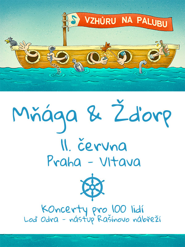 Vzhůru na palubu přináší live koncerty na palubě parníku Odra, kde si v malém počtu lidí bezpečně užijete nejen svého oblíbeného umělce, ale i dvouhodinovou vyhlídkovou plavbu Prahou. Mimo to svojí účastí umělce podpoříte. Interpreti i kapely a celé jejich teamy (zvukaři, osvětlovači, technici, manageři,dopravci atd.) teď prožívají nelehké období.