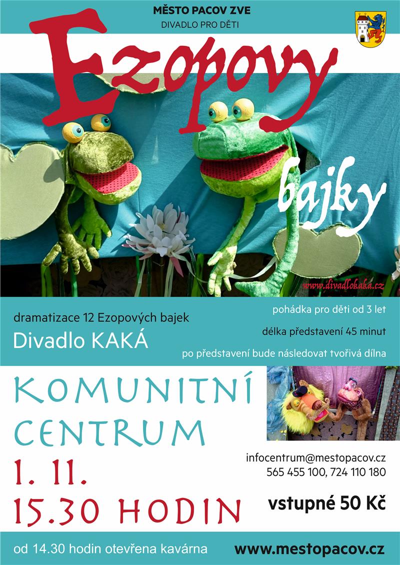 Divadlo KAKÁ tentokrát zdramatizovalo dvanácti Ezopových bajek. Interaktivní představení s autorskými písněmi, živou hudbou, svébytnou scénografií a v neposlední řadě jemným humorem nejen pro děti.