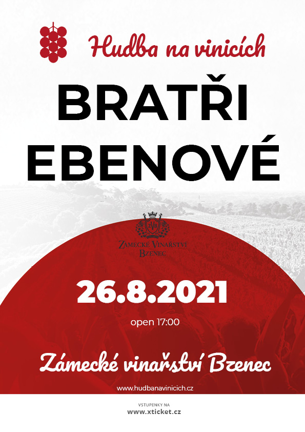 Tři bratři Kryštov, Marek a David Ebenové mají na svém triku rozsáhlou a kreativní hudební tvorbu. Bratrská sestava sází zejména na dokonalý hudební projev a na originalitu svých textů. Jejich koncerty jsou intelektuálně-populární hudbou pro náročné posluchače. Užijete si výjimečný večer se stejně tak výjimečnými víny od vyhlášeného Zámeckého vinařství Bzenec. Kapacita omezena a lístky ZDE!