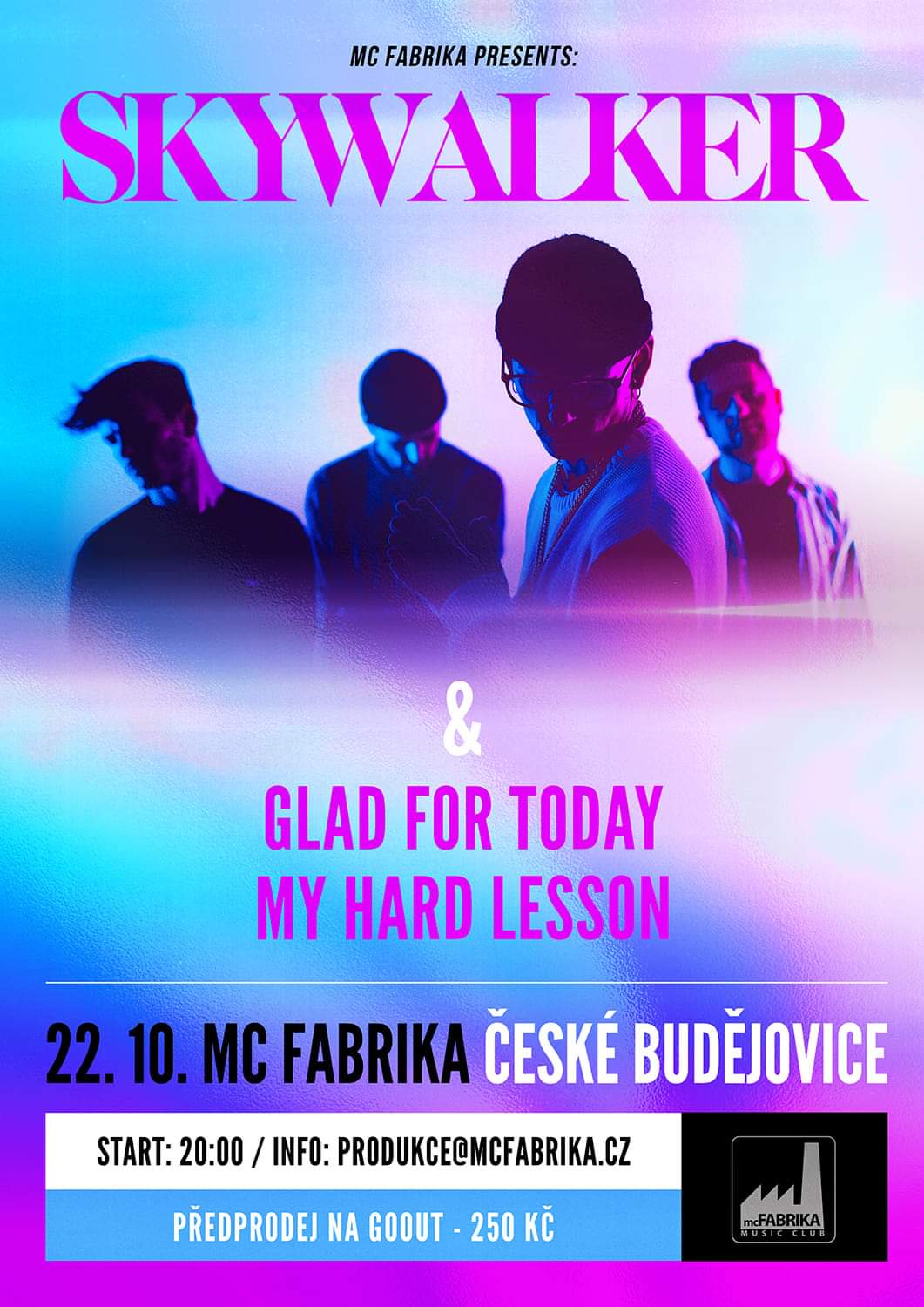 Společný koncert českých kapel Skywalker a supportu, o který se postarají Glad For Today a My Hard Lesson. Akce se koná 22. října v MC Fabrika.