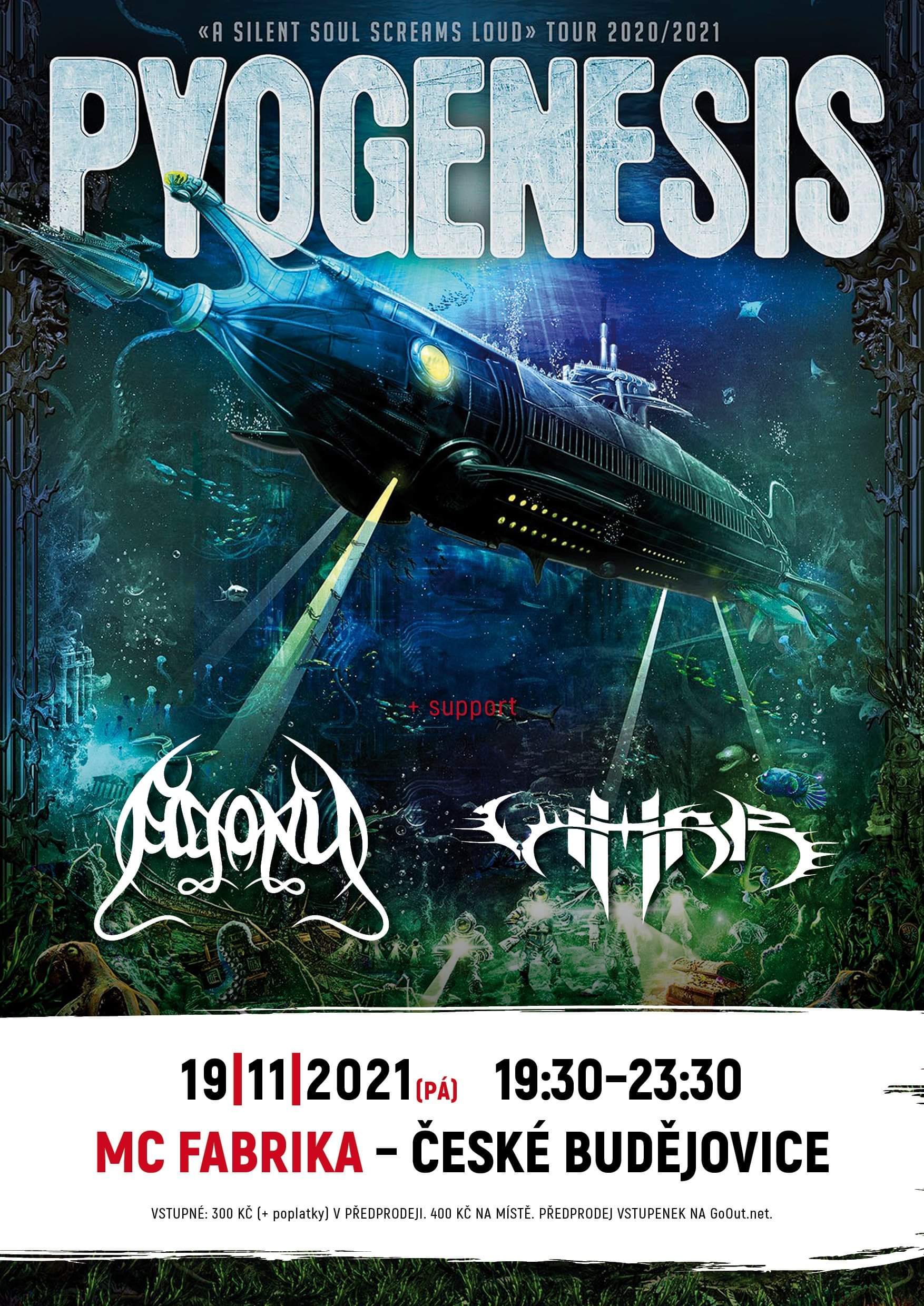 V pátek 19. listopadu 2021 od 19:30 proběhne v českobudějovickém klubu MC Fabrika koncert kapel Pyogenesis, The Agony a Vihar.