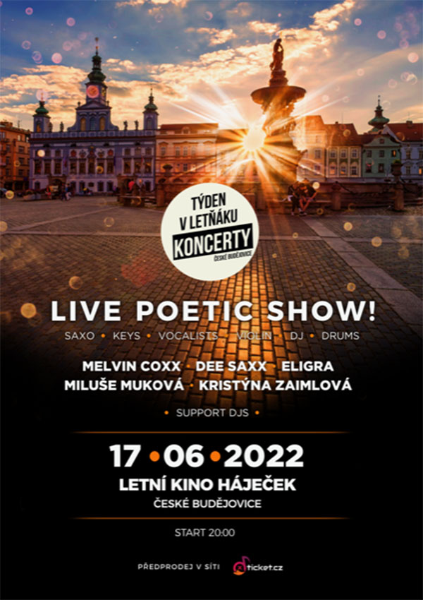 Live Poetic Show Melvin Coxx, DeeSaxx, Eligra, Miluše Muková, Kristýna Zaimlová Support DJs