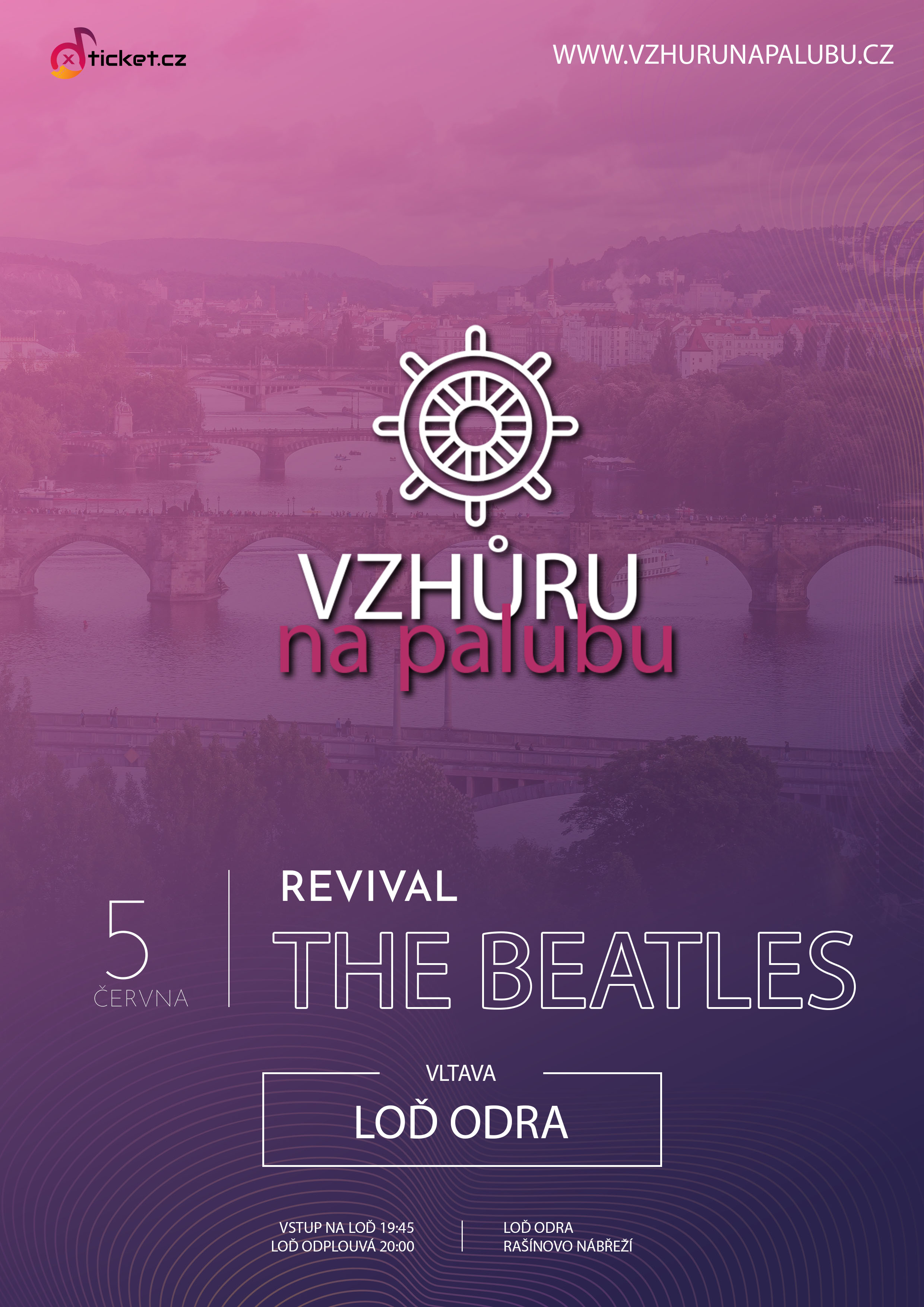Dvouhodinová plavba Starou Prahou. Nástup je na Rašínově nábřeží. Točíme plzeňskou dvanáctku a máme i drobné občerstvení. Přijďte si užít skvělý koncert s úžasnou plavbou parníkem v Praze.