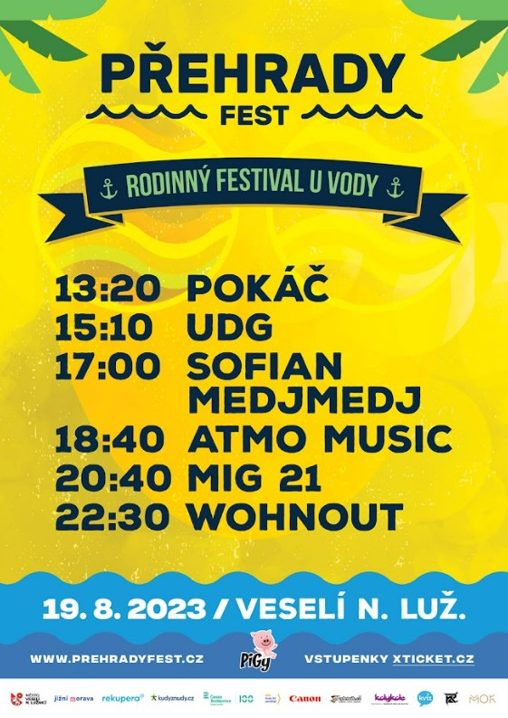 Šestý ročník populárního Přehrady FESTu zasáhne břehy Vranova, Seče a Veselí nad Lužnicí v srpnu. Začínáme 4.–5. 8. na břehu Vranovské pláže, pokračujeme 11.–12. 8. na přehradě Seč a 19. 8. zavítáme do Veselských Pískoven.