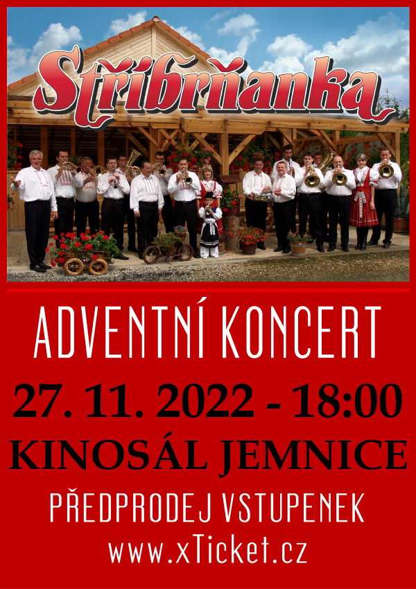 Kapela Stříbrňanka zahájí adventní čas v Jemnici svým dechovým koncertem v podání jejich nejznámějších dechových skladeb doplněný několika koledami. Koncert se uskuteční v neděli 27. listopadu 2022 od 18. hodin v jemnickém kinosále. Nenechte si ujít koncert bezmála dvacetičlenného souboru, který letos oslavil 52 let od svého založení.