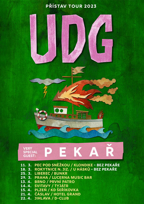 a 18.3 v Rokytnici nad Jizerou, dále pak zavítají do Liberce, Prahy, Brna, Svitav, Plzně, Čáslavi a Jihlavy. UDG lákají na více než dvouhodinový koncertní set, v němž zazní písně ze všech alb z více než dvacetileté kariéry této ústecké party.